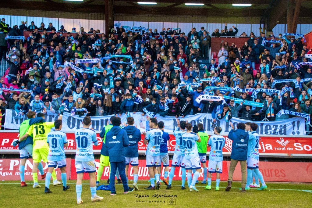 El Club Deportivo Brea vivió en Soria un domingo inolvidable en el que, a pesar de competir de tú a tú contra todo un CD Numancia, cayó derrotado por la mínima. Alrededor de 500 aficionados celestes acompañaron al equipo en Los Pajaritos demostrando, una vez más, que tenemos la mejor afición de la categoría.